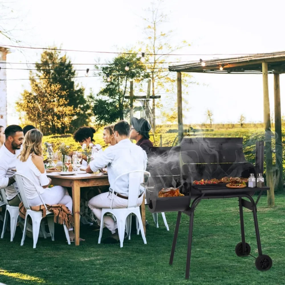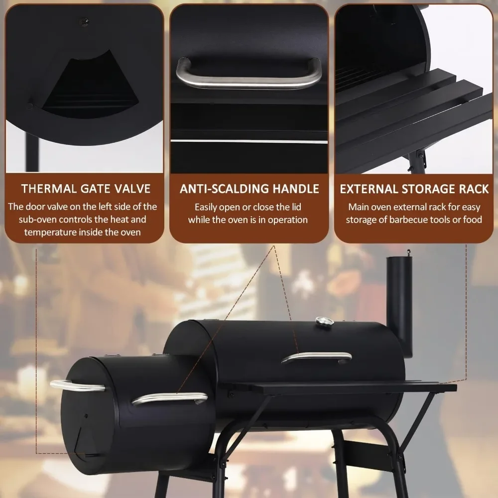 - 【2-in-1 Combination Grill】This Charcoal grills is a perfect combination of BBQ Grill and smoker. Features with 2 ovens, you can enjoy both grilled and smoked meats simultaneously.The side fire box can independently roast the ingredients, or it can be used as a smoke-producing area to provide the main oven with smoked function.